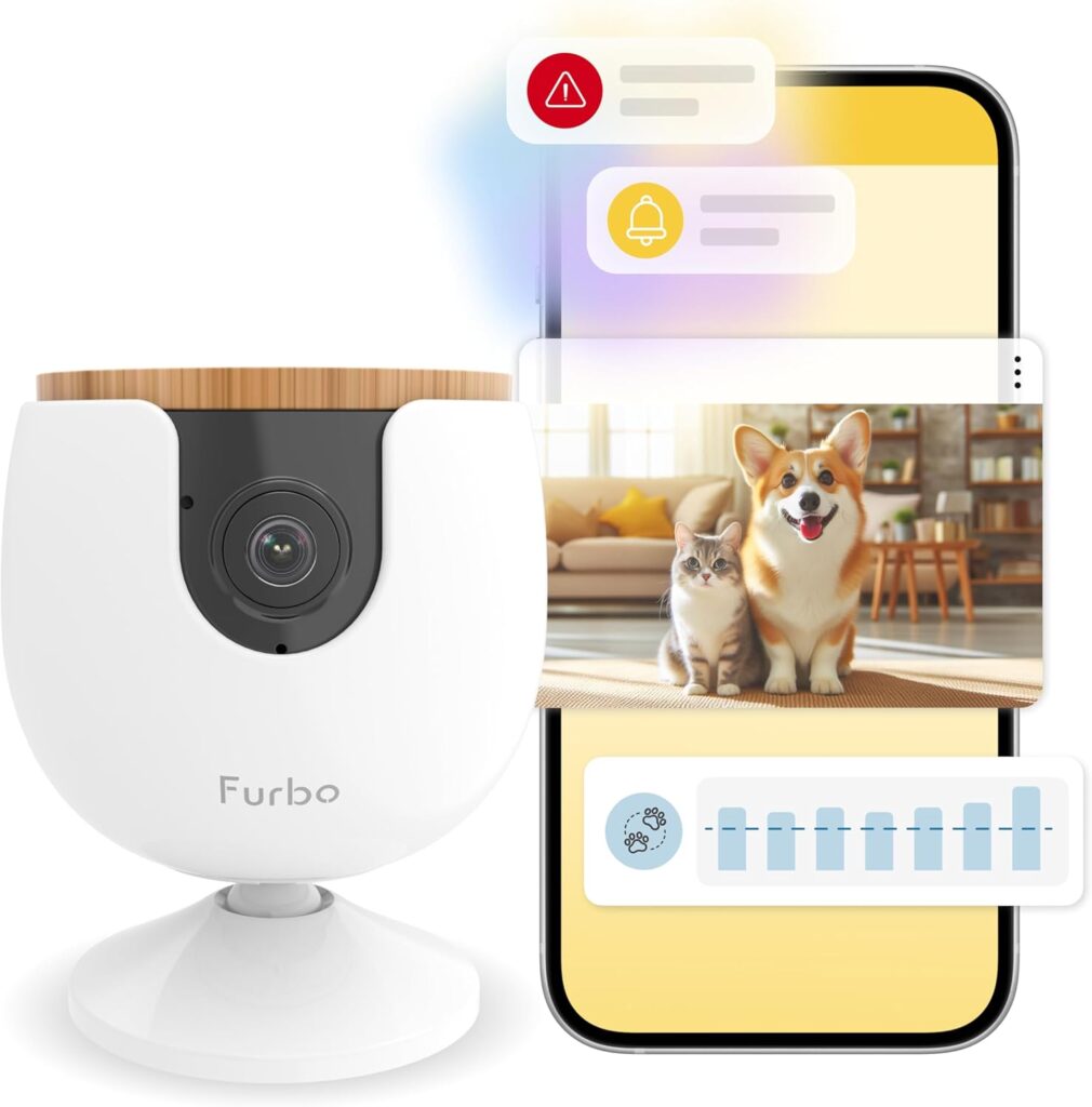 3. Furbo Cámara para Gatos 360° [CÁMARA BÁSICA]. Seguimiento Automático, Alerta de Maullidos, Lanza Premios.