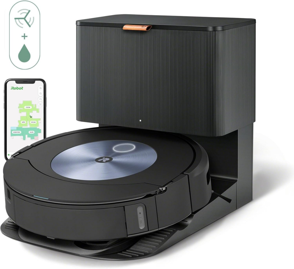 Roomba Combo j7+ es el único robot 2 en 1 que eleva el paño hasta la parte superior del robot cuando detecta una alfombra, manteniéndola totalmente seca y a salvo. En suelos duros aspira y friega a la vez, dejando el suelo limpio y brillante en una sola pasada, sin que tengas que cambiar de modo ni vigilarlo.